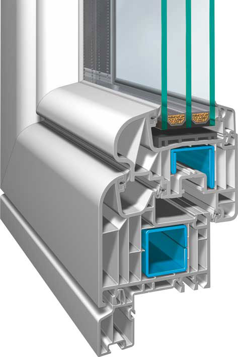 Kunststoff-Energiesparfenster mit glattem, abgerundetem Profil.